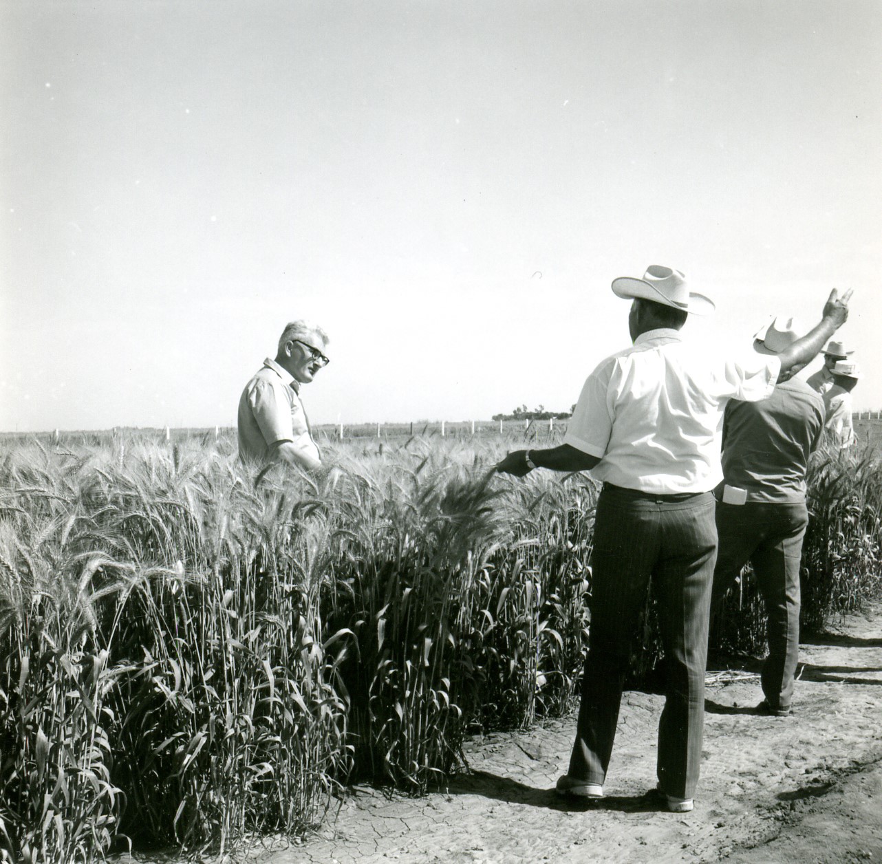 Dr. Norman E. Borlaug with visitors at Centro de Investigaciones Agricolas del Noreste (CIANO).